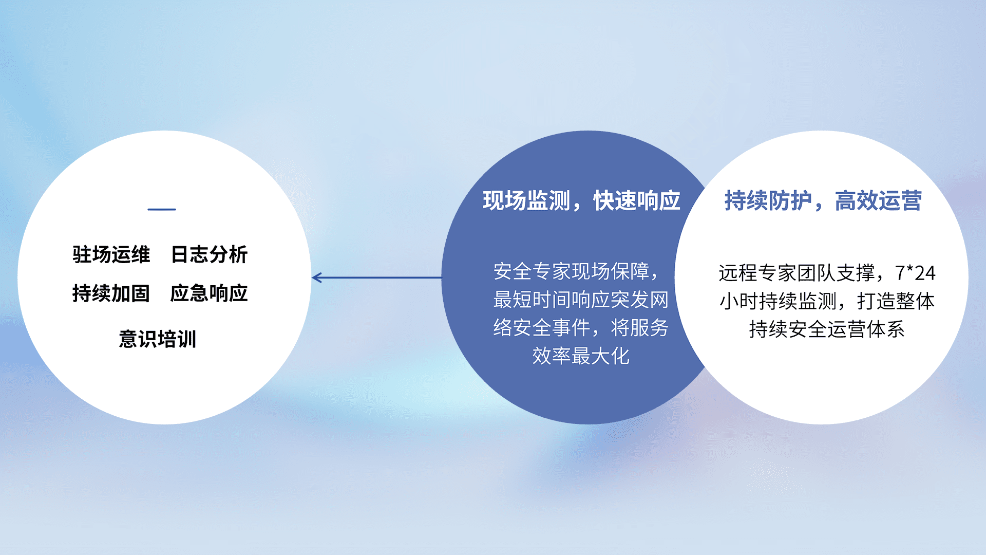 7X24小时持续监测安全事件,保持安全策略有效性,降低资产脆弱性风险,,精准拦截黑客攻击,,,减少被黑客利用的机会,,,第一时间遏制,,,降低损失。。。